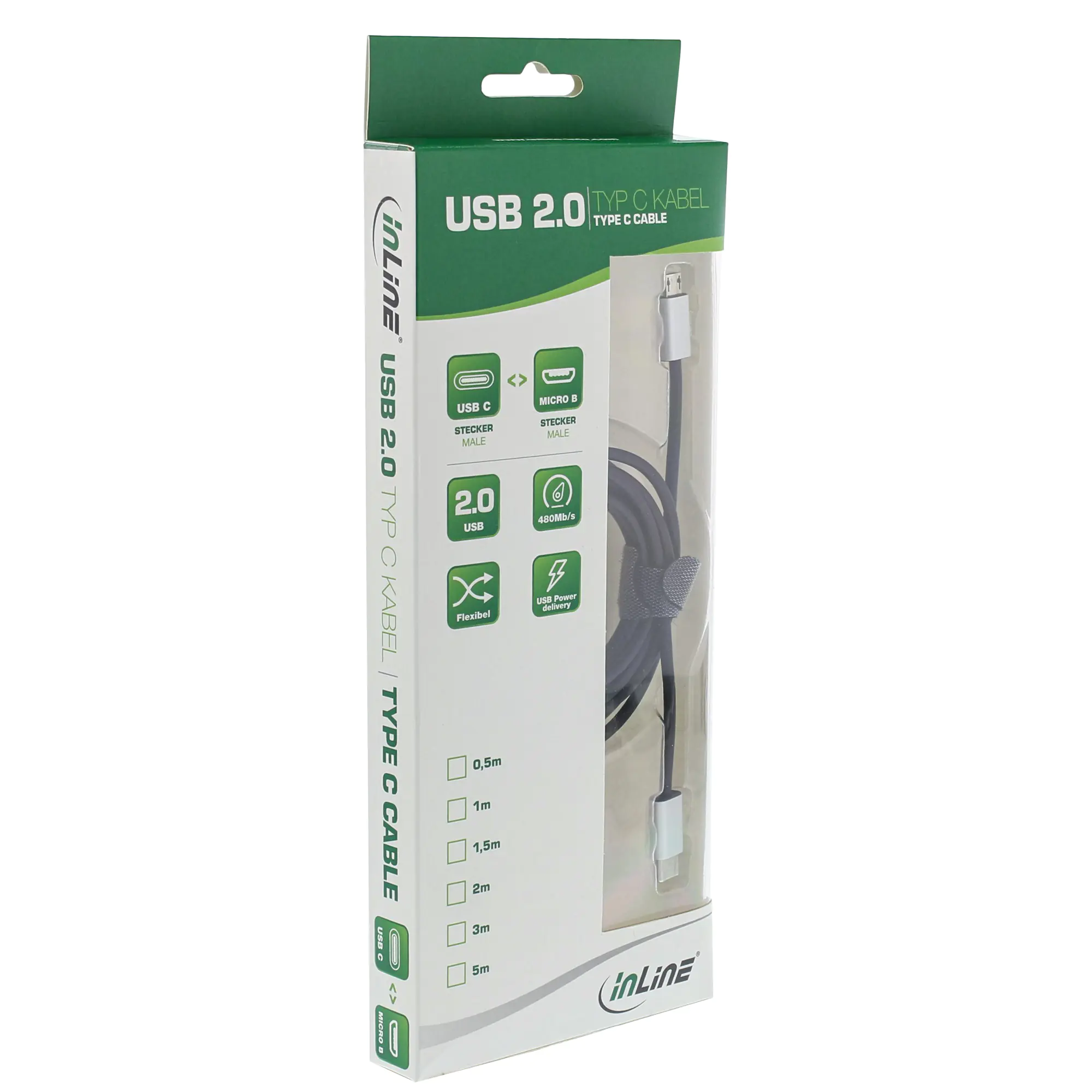 InLine - USB-Kabel - USB-C (M) bis Micro-USB Typ B (M) - USB 2.0 - 1.5 cm - Schwarz
