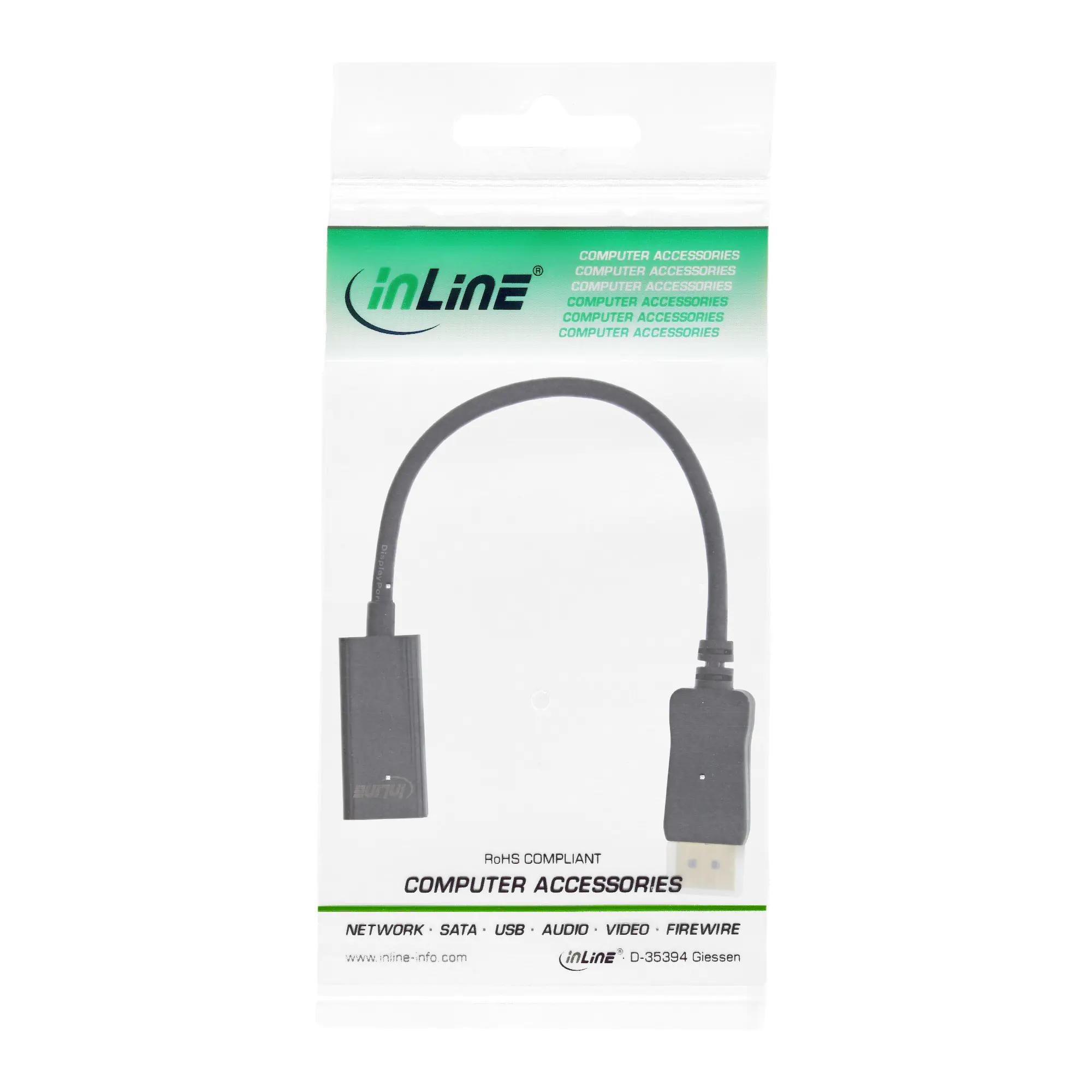 InLine - Videoadapter - DisplayPort männlich zu HDMI weiblich - 15 cm - Schwarz - 4K Unterstützung