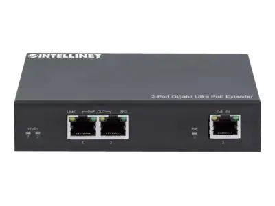 Intellinet 2-Port Gigabit Ultra PoE Extender, Adds up to 100 m (328 ft.) to PoE Range, PoE Power Budget 60 W, Two PSE Ports with 30 W Output Each, IEEE 802.3bt/at/af Compliant, Metal Housing - Netzwerk-/Stromextender - 1GbE - 100Base-TX, 10Base-T, 1000Bas