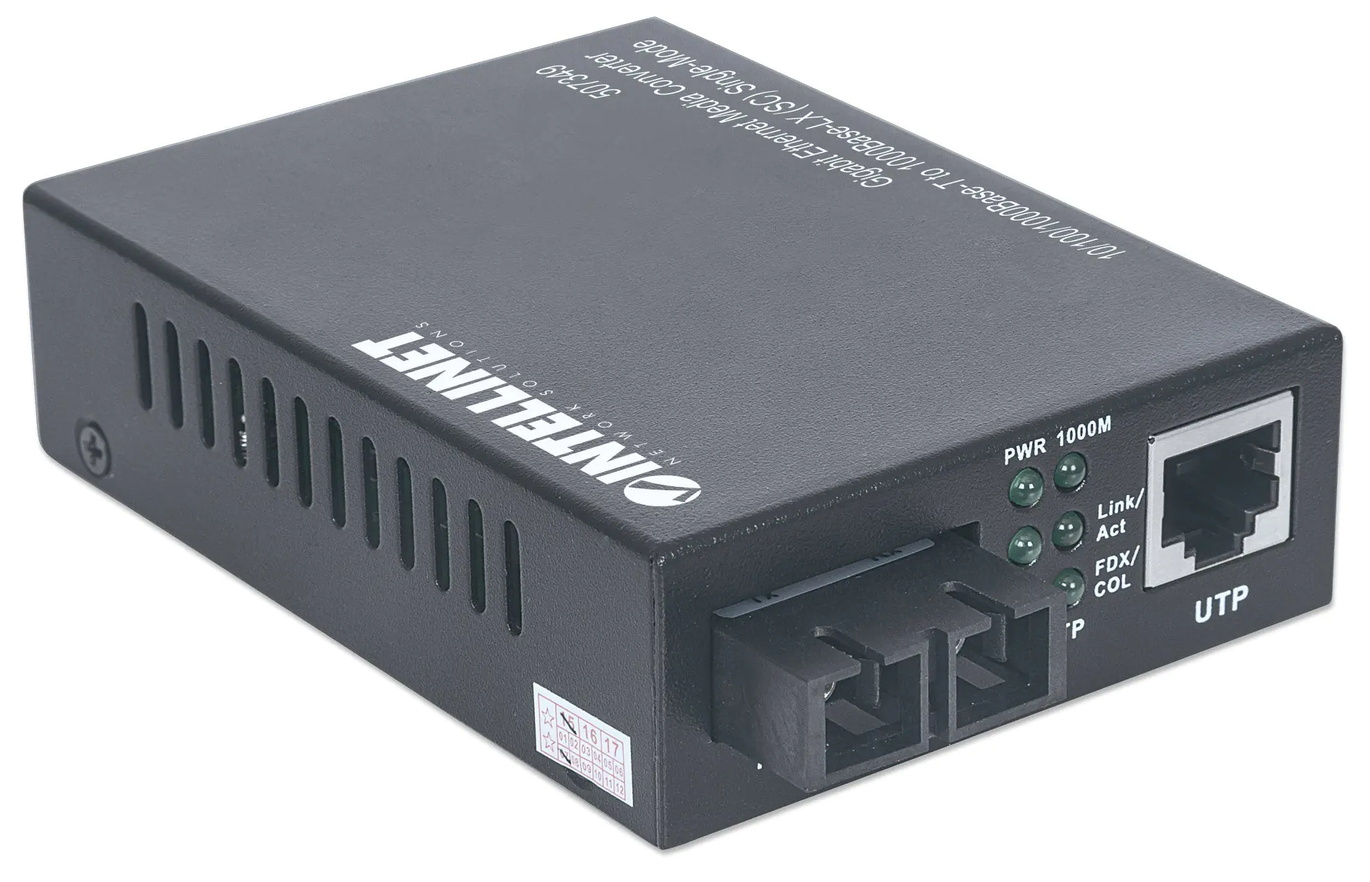 Intellinet Gigabit Ethernet Singlemode Medienkonverter, 10/100/1000Base-T auf 1000Base-LX (SC) Single Mode, 20 km - Medienkonverter - GigE - 10Base-T, 1000Base-LX, 100Base-TX, 1000Base-T - RJ-45 / SC Single-Modus - bis zu 20 km - 1310 nm