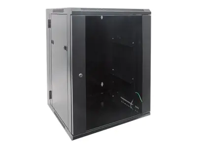 Intellinet Network Cabinet, Wall Mount (Double Section Hinged Swing Out), 15U, Usable Depth 425mm/Width 540mm, Black, Assembled, Max 30kg, Swings out for access to back of cabinet when installed on wall, 19",Parts for wall install (eg screws/rawl plugs) n