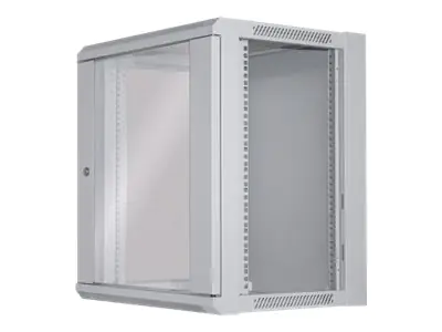 Intellinet Network Cabinet, Wall Mount (Standard), 12U, Usable Depth 260mm/Width 510mm, Grey, Flatpack, Max 60kg, Metal & Glass Door, Back Panel, Removeable Sides, Suitable also for use on desk or floor, 19",Parts for wall install (eg screws/rawl plugs) n