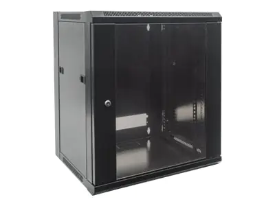 Intellinet Network Cabinet, Wall Mount (Standard), 15U, Usable Depth 410mm/Width 510mm, Black, Flatpack, Max 60kg, Metal & Glass Door, Back Panel, Removeable Sides,Suitable also for use on desk or floor, 19",Parts for wall install (eg screws/rawl plugs) n