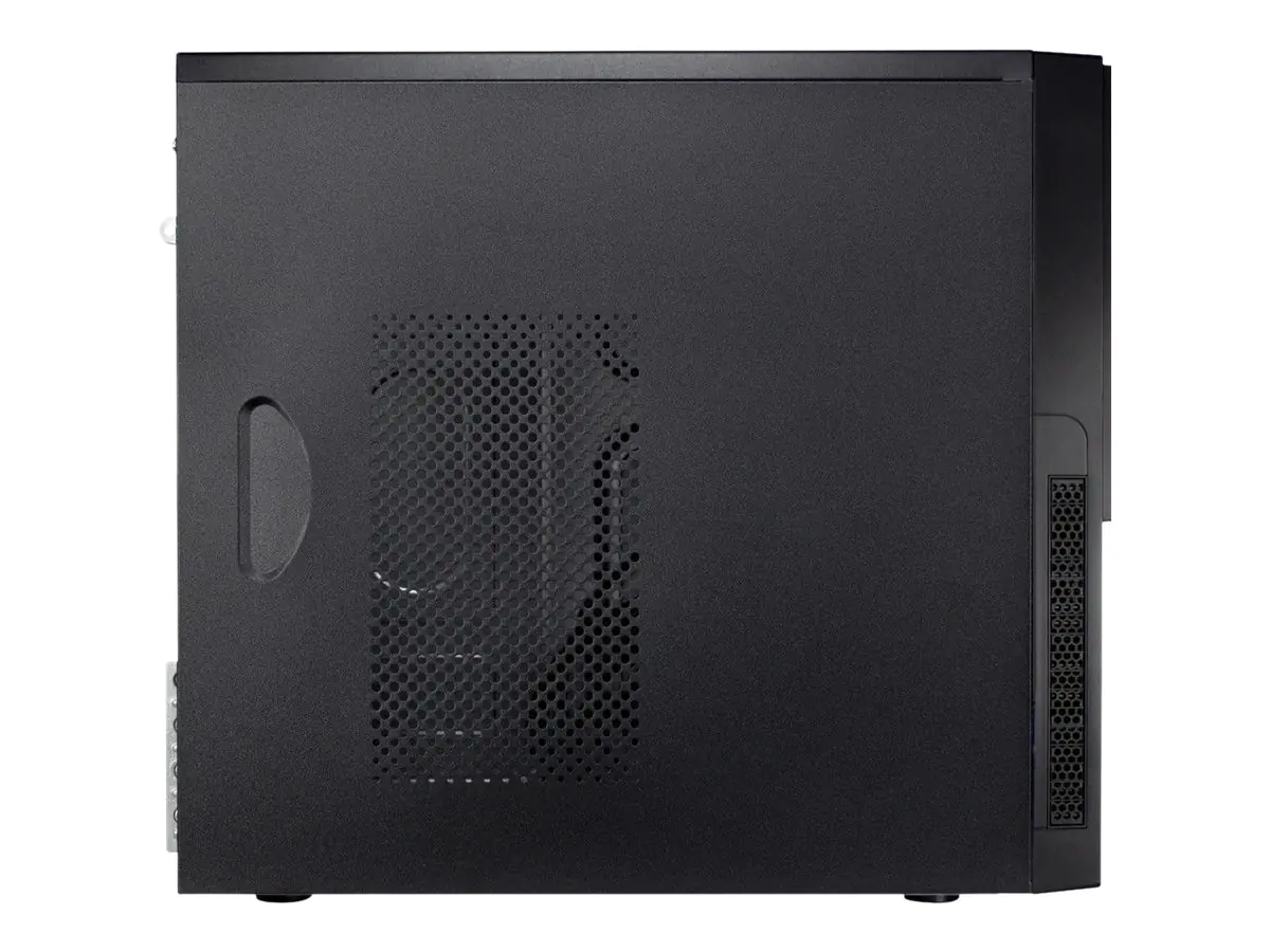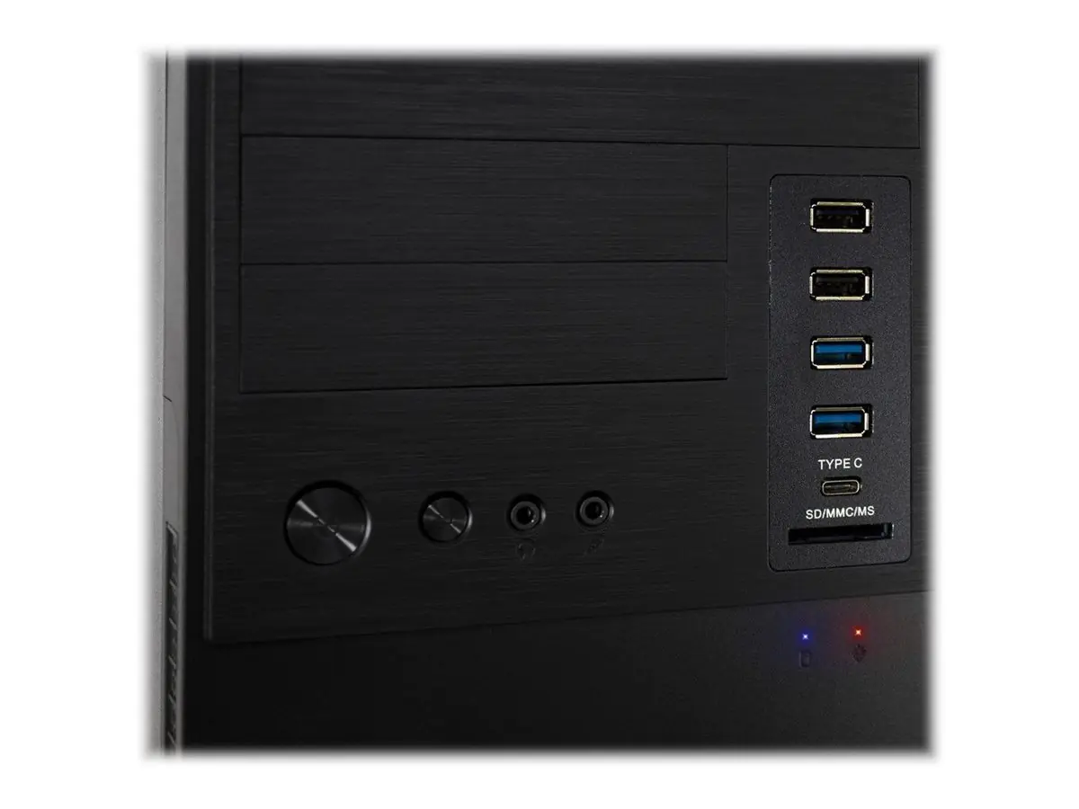 Die kompakte Bauform im Micro-ATX Standard bietet ausreichend Platz. Je zwei externe 3,5" und 5,25" Laufwerke sowie Grafikkarten bis zu einer Länge von 34 cm passen spielend hinein.