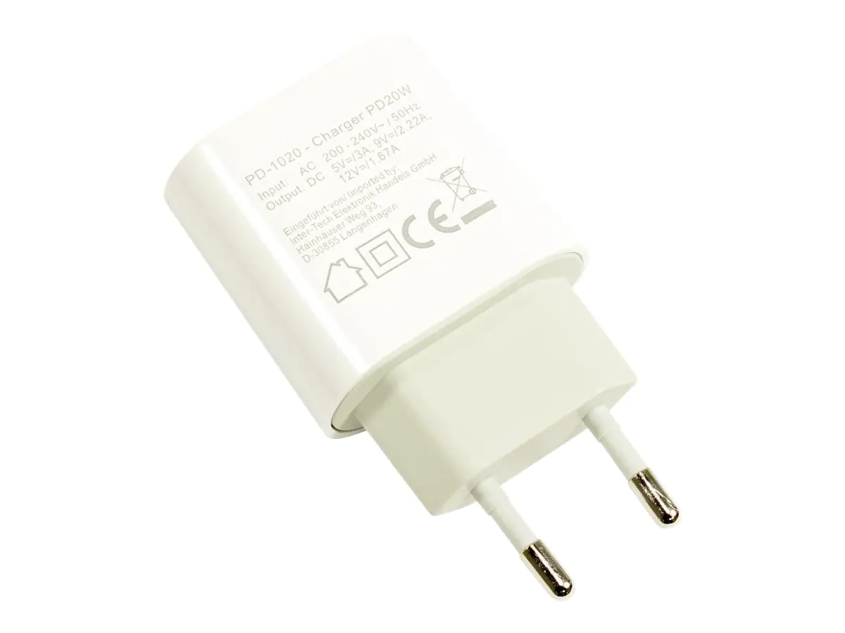 Beschreibung | Inter-Tech PD-1020 - Netzteil - 20 Watt - 3 A - PD 3.0, QC 2.0 (USB-C) 12 V - Weiß | |||