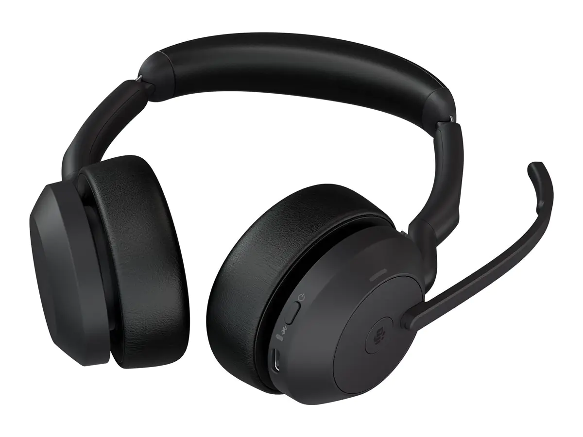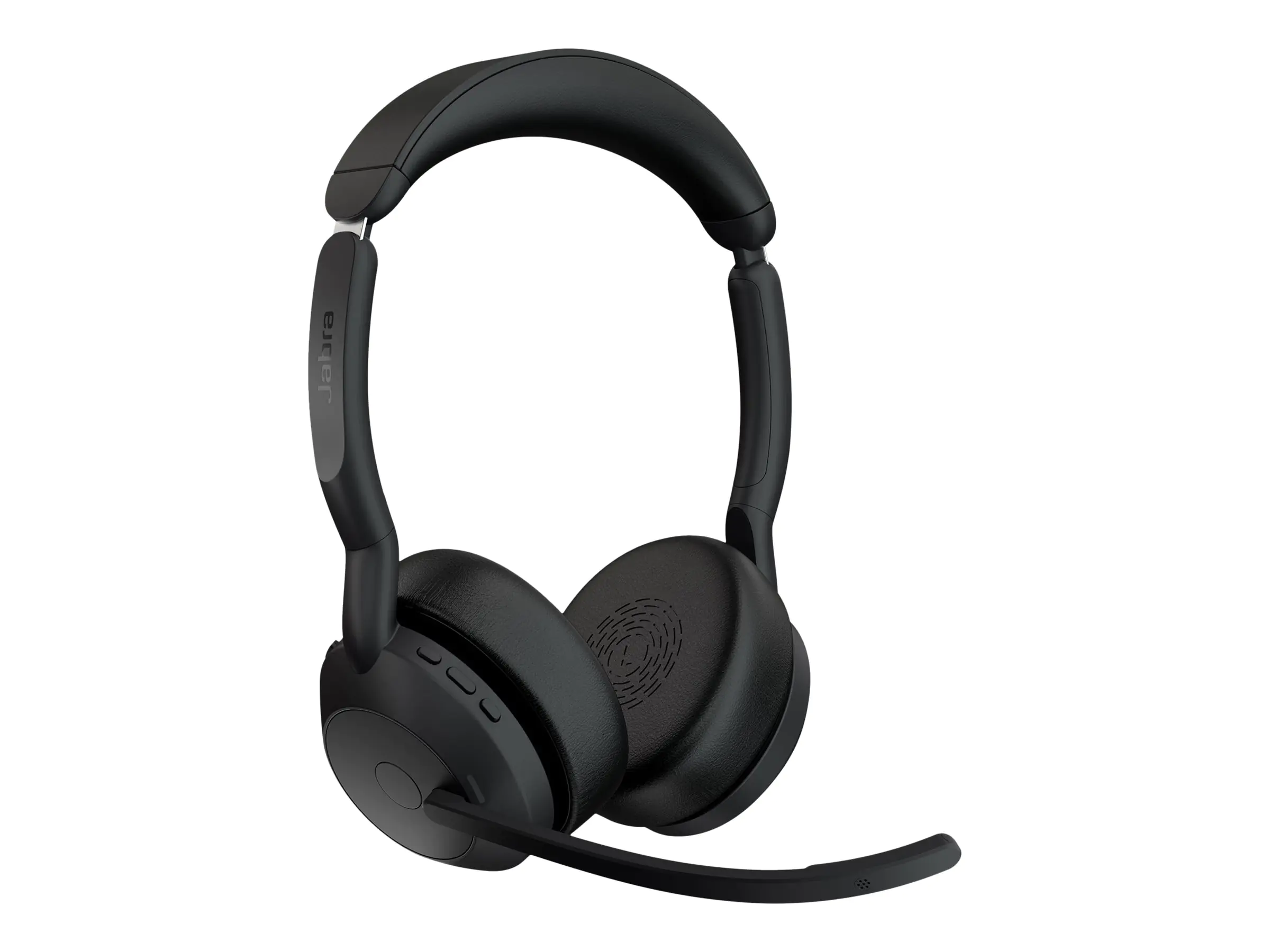 Jabra Evolve2 55 UC Stereo - Headset - On-Ear - Bluetooth - kabellos - aktive Rauschunterdrückung - USB-C, USB-A - Schwarz - mit Ladestation - Zoom Certified, Zertifiziert für Microsoft Teams, Cisco Webex Certified, optimiert für UC, Alcatel-Lucent-zertif