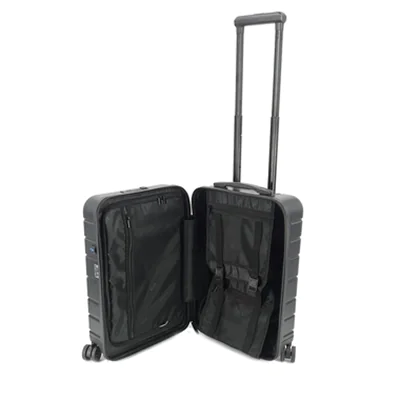 - Arretierbares Teleskoptrolleysystem, vier 360 Grad Leichtlaufrollen, Beidseitige Packmöglichkeit durch Packtrennwand und Packgurt, zusätzlicher USB-Port, ein Fach für eine Powerbank (nicht im Lieferumfang enthalten), Smartphone Halterung im Griff, zusätzliches Reißverschlussfach im Rücken
