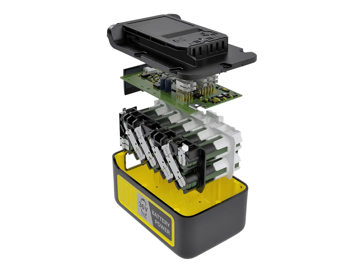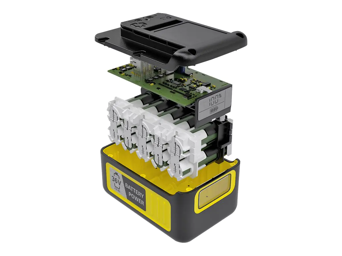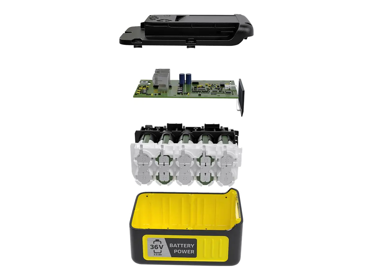 Der 36 V / 2,5 Ah Kärcher Battery Power-Wechselakku eignet sich für den Einsatz in allen Geräten der 36 V Kärcher Akkuplattform. Dank innovativer Real Time Technology mit LCD-Display sind Restlaufzeit, Restladezeit und Ladezustand - abhängig vom genutzten Gerät - immer im Blick. Leistungsfähige Lithium-Ionen-Zellen sorgen für konstante Leistung und dafür, dass sich der Akku nicht selbst entlädt oder durch häufige Teilentladung an Kapazität verliert (Memory-Effekt). Angenehme Soft-Touch-Gehäuseelemente sorgen für einen rutschfesten Stand auf glatten und schrägen Oberflächen.