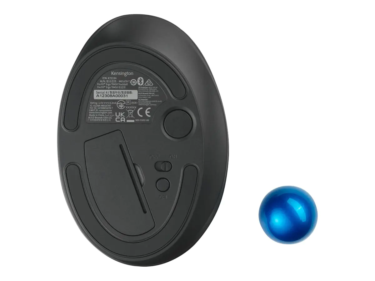 Kensington Pro Fit Ergo TB450 EQ - Trackball - ergonomisch - optisch - 7 Tasten - kabellos - 2.4 GHz, Bluetooth - kabelloser Empfänger (USB)