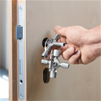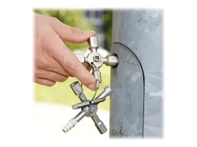 - Multifunktionaler Schlüssel für Betätigung von Schließungen aus den Bereichen Gebäudetechnik, Gas- und Wasserversorgung und Absperrsysteme