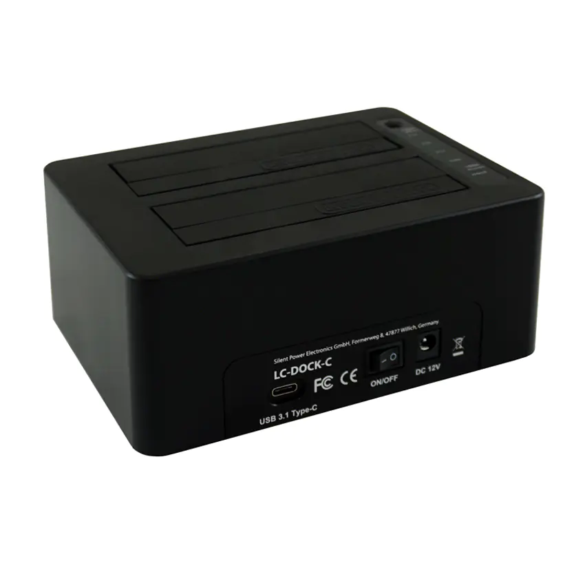 LC Power LC-DOCK-C - HDD-Dockingstation mit Ein/Aus-Schalter Schächte: 2 - 2,5" / 3,5" gemeinsam genutzt (6,4 cm/8,9 cm gemeinsam genutzt) - SATA - USB 3.1 (Gen 2) - Schwarz