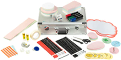 Vollständig ausgestattet für Präsentation, Moderation und Brainstorming. Inhalt: 1 Flyer Tipps & Tricks, 250 Emoticon-Symbolkarten, 500 Rechteckkarten, 9,5 x 20 cm farbig sortiert (freie Farbauswahl nicht möglich), 250 Kreise, Ø 9.5 cm farbig sortiert (freie Farbauswahl nicht möglich), 250 Kreise, Ø 14 cm farbig sortiert (freie Farbauswahl nicht möglich), 250 Kreise, Ø 19 cm farbig sortiert (freie Farbauswahl nicht möglich), 100 Ovale, 11 x 19 cm farbig sortiert (freie Farbauswahl nicht möglich), je 15 Präsentations-Marker TZ 41 (schwarz, rot), 4 Jumbo Präsentations-Marker TZ 48 (1 x schwarz, 1 x rot, 1 x blau, 1 x grün), 400 Moderationsnadeln farbig sortiert (freie Farbauswahl nicht möglich), 2 Klebestifte, 20 Wolken, 26,5 x 43 cm, 1040 Klebepunkte, Ø 19 mm (520 x rot, 520 x blau), 1 Clip-Nadelkissen, 1 Bandabroller inkl. 1 Bandrolle, 1 Teleskopzeigestab mit integriertem Stift, 4 Boardmarker TZ 100 (schwarz, rot), 1 Schere, 20 cm, 1 Rolle Abdeckband, 100 Streifen für Überschriften, 10 x 46 cm farbig sortiert (freie Farbauswahl nicht möglich), 1 Cutter, 1 Ersatz-Bandrolle für den Bandabroller