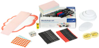 Stabiler Karton mit Tragegriff. Der Karton ist wiederverwendbar und leicht zu öffnen/schließen. 1 Büchlein Tipps & Tricks für eine erfolgreiche Moderation. Verwendbar für ca. 15 Teilnehmer eines Workshops. Inhalt: 500 Rechteckkarten, 9,5 x 20 cm (farbig sortiert), 100 Kreise, Ø 9,5 cm (weiß), 100 Kreise, Ø 14 cm (weiß), 50 Kreise, Ø 19 cm (weiß), 50 Ovale, 11 x 19 cm (weiß), 100 Moderationskarten Emoticons Gesicht (lachend, traurig), 20 Präsentation Marker TZ 41 (je 10 x schwarz, rot), 4 Jumbo Präsentation Marker TZ 48 (je 1 x schwarz, rot, blau, grün), 200 Moderationsnadeln (sortierte Farben), 1 Klebestift, 10 Moderationswolken, 26,5 x 43 cm, 1040 Klebepunkte, Ø 19 mm (je 520 in rot, blau), 50 Überschriftenstreifen, 10 x 46 cm (rosa).
