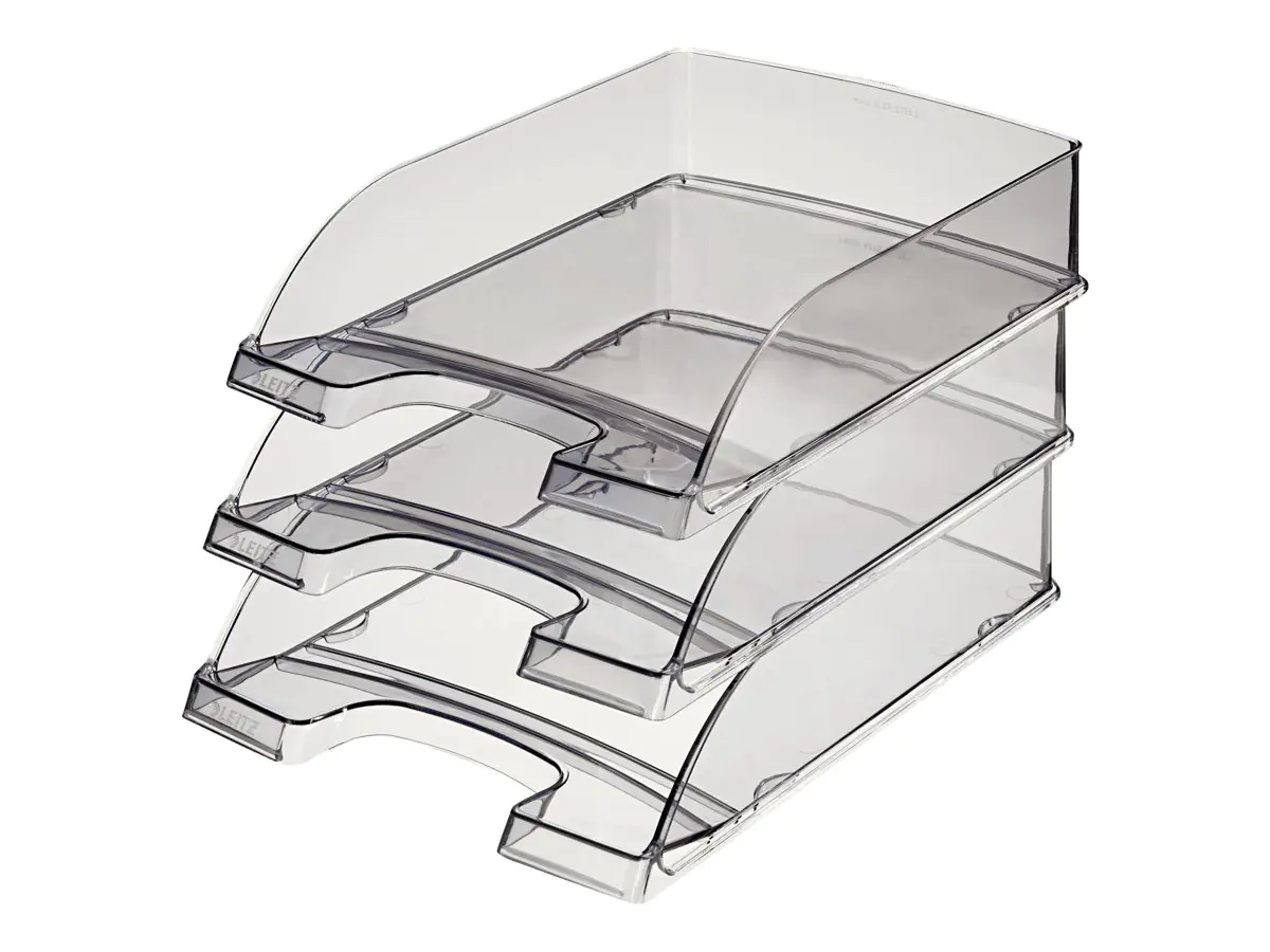 Senkrecht oder versetzt stapelbar, auch mit den Leitz Briefkörben 5227, 5237, 5233 und 5217.