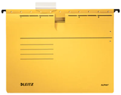 Für die geheftete Ablage von Einzelakten. Mit Daumenausschnitt und fest eingezacktem Aufreihband, Hängeschiene mit kunststoffumsinterten Hängenasen. Mit Vollsichtreiter und auswechselbaren Blanko-Schildchen.