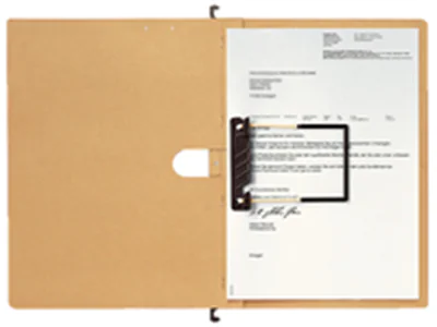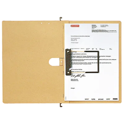 Hängehefter für die geheftete Ablage von Einzelakten. Hängeschiene mit kunststoffummantelten Hängenasen, Daumenausschnitt und Aufreihband.