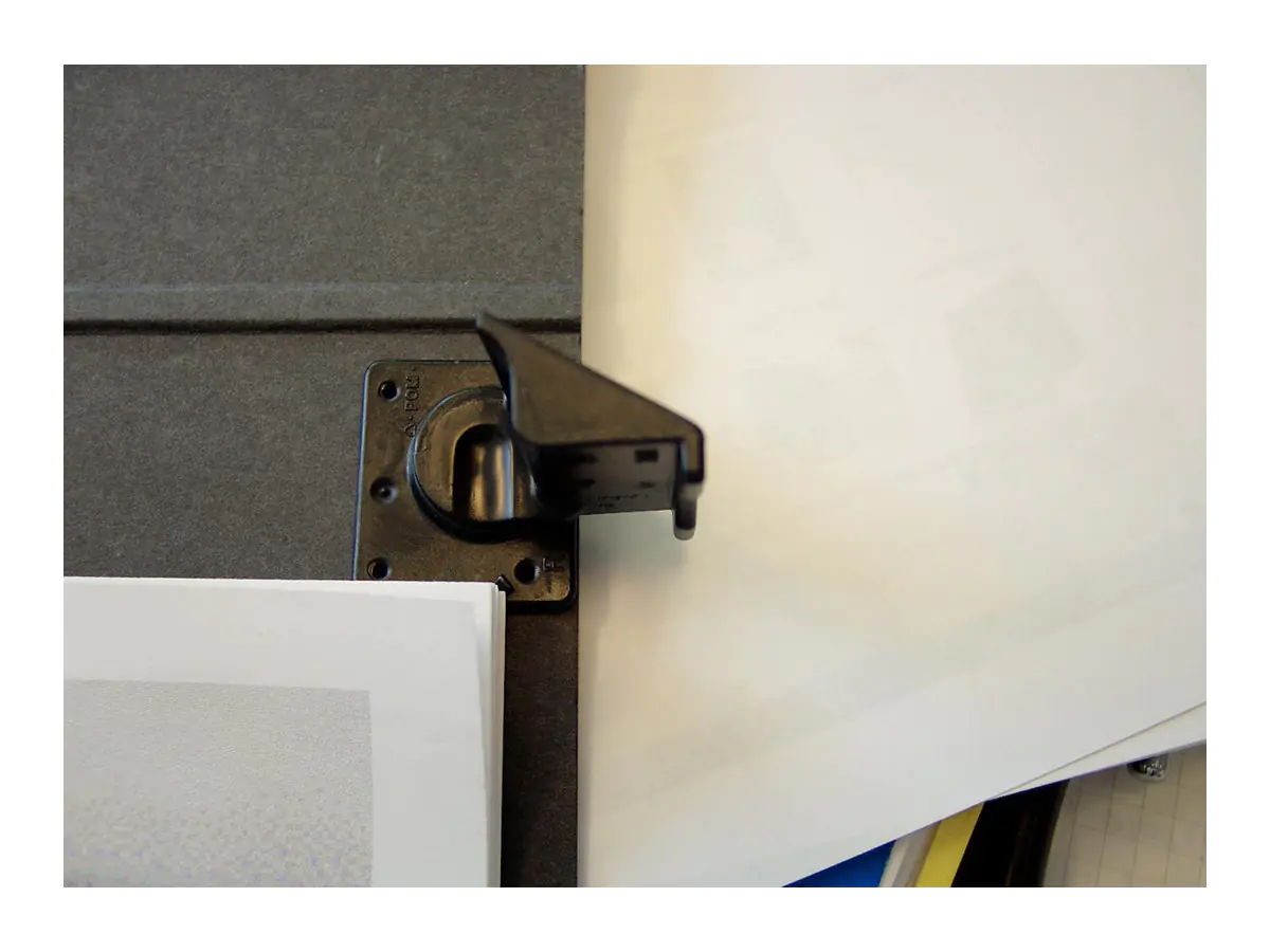 50 % weitere Mechaniköffnung für schnelleres und komfortableres Arbeiten. Ablegen auch auf der linken Seite möglich. Mit Hängeschwenkbügel aus Kunststoff (POM). Die Schwenkbügel werden zum Hängen aus- oder zum Stellen eingeklappt. 5 Jahre Garantie auf die Mechanik.