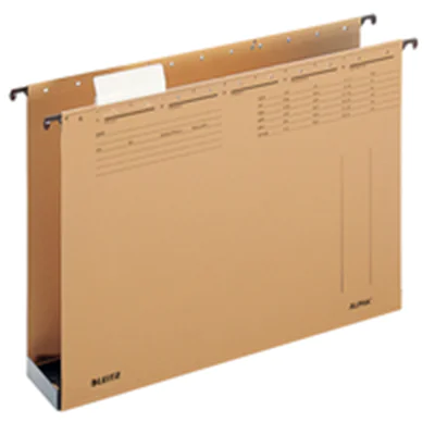 - Mit stark belastbarem 60 mm breiten Kunststoffboden und Seitenbe.g.renzung des Bodens, damit Dokumente sicher stehen und alle Unterlagen im Hängesammler bleiben