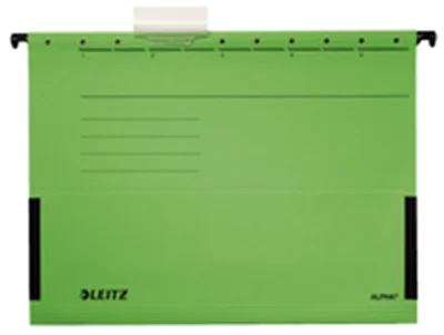 Seitlich mit Fröschen verschlossen. Frösche aus extrem reißfestem Material. Für Loseblatt-Ablage von Einzelakten. Mit Schlitzstanzung für Einsteckheftstreifen (6130), Hängeschiene mit kunststoffumsinterten Hängenasen. Vollsichtreiter und auswechselbaren Blanko-Schildchen.