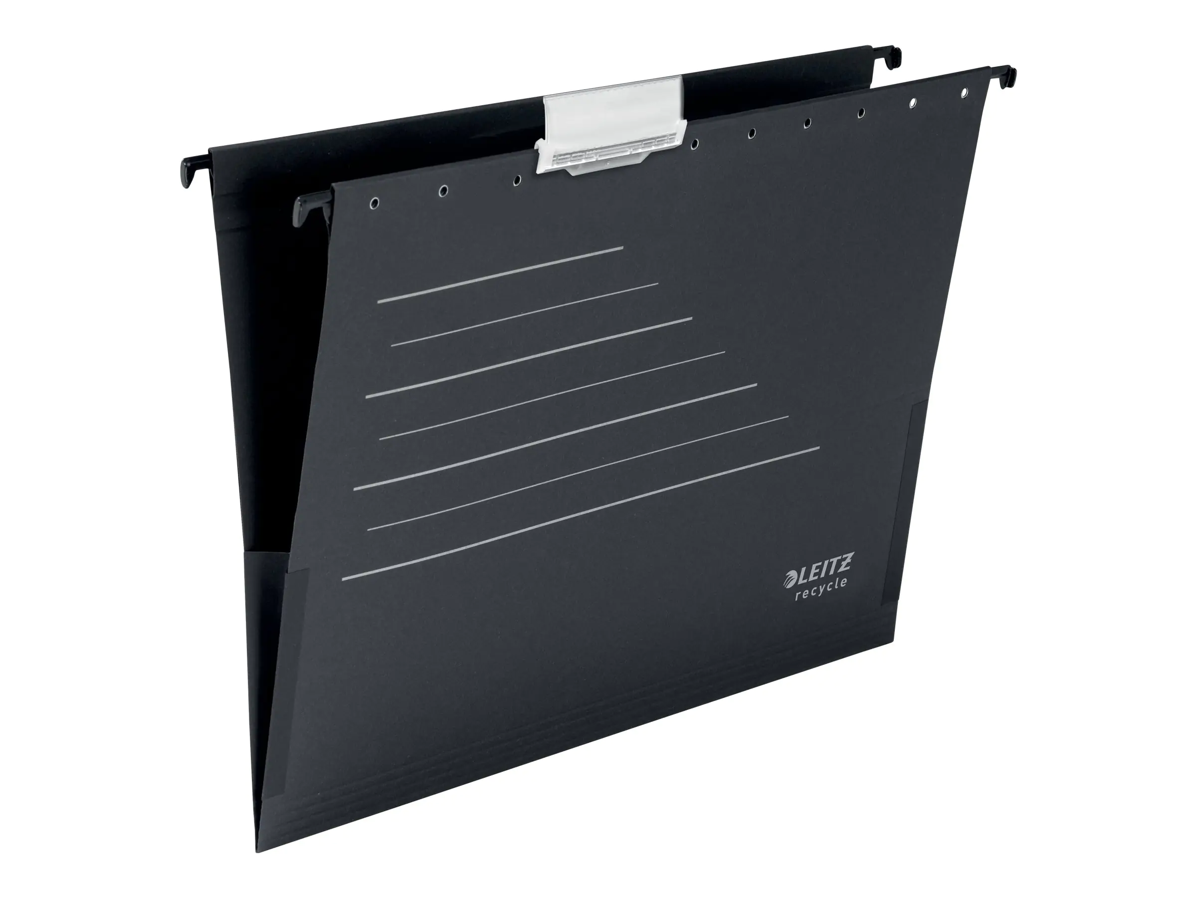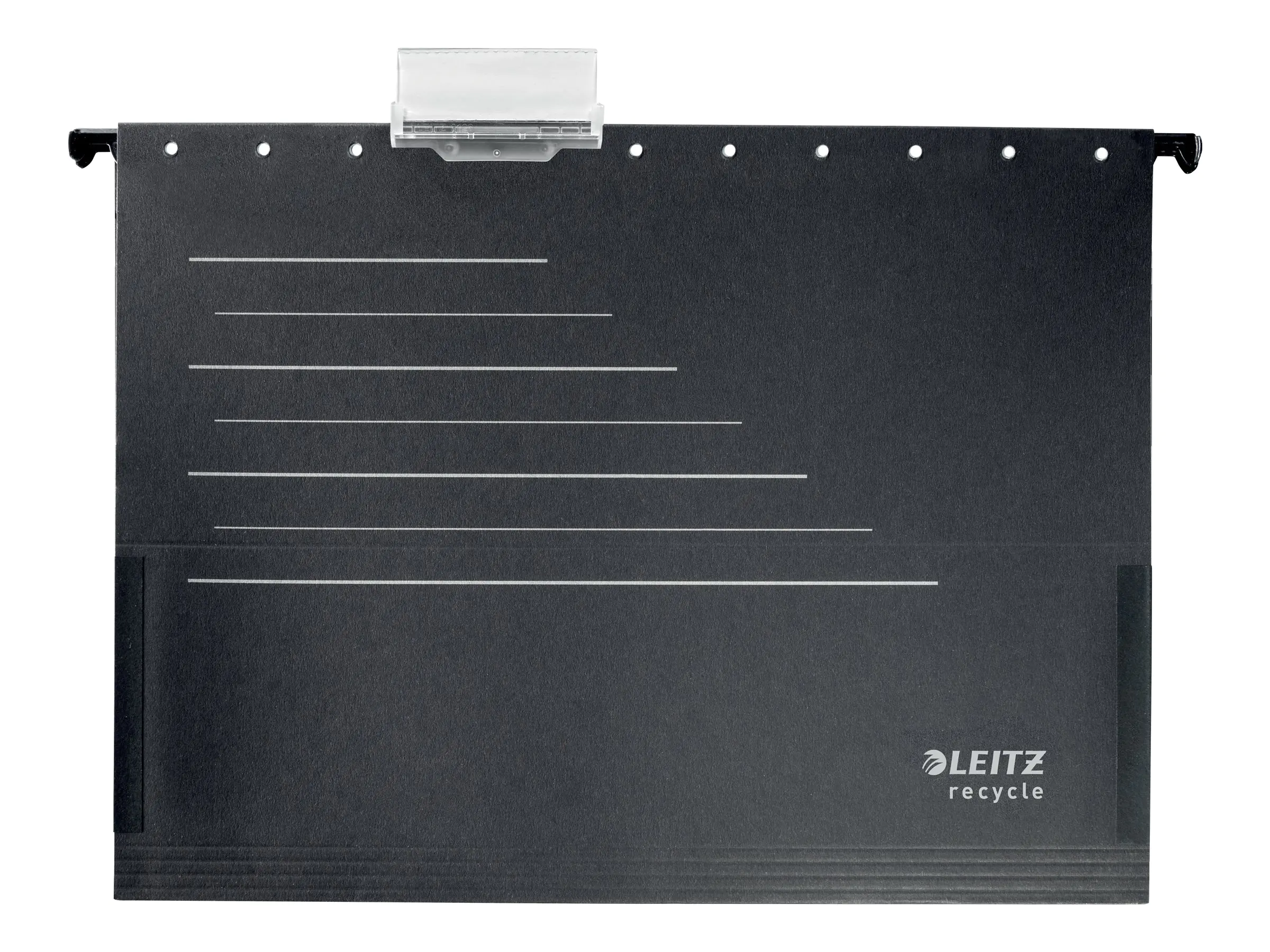 Umweltfreundliche Hängetasche in Premiumqualität. Ideal für die platzsparende Ablage loser Unterlagen im Hängezug. Mit stabilen Hängeschienen, die auch starker Beanspruchung standhalten und einem Reiter, der bei der Organisation und Identifikation von Inhalten hilft. Gestalten und drucken Sie Ihr eigenes Beschriftungsschild online unter www.leitz-easprint.com. Mit der neuen umweltfreundlichen Recycle Serie von Leitz helfen Sie, unsere Umwelt zu schützen und sorgen gleichzeitig für ein attraktives und umweltfreundliches Erscheinungsbild Ihres Büros.