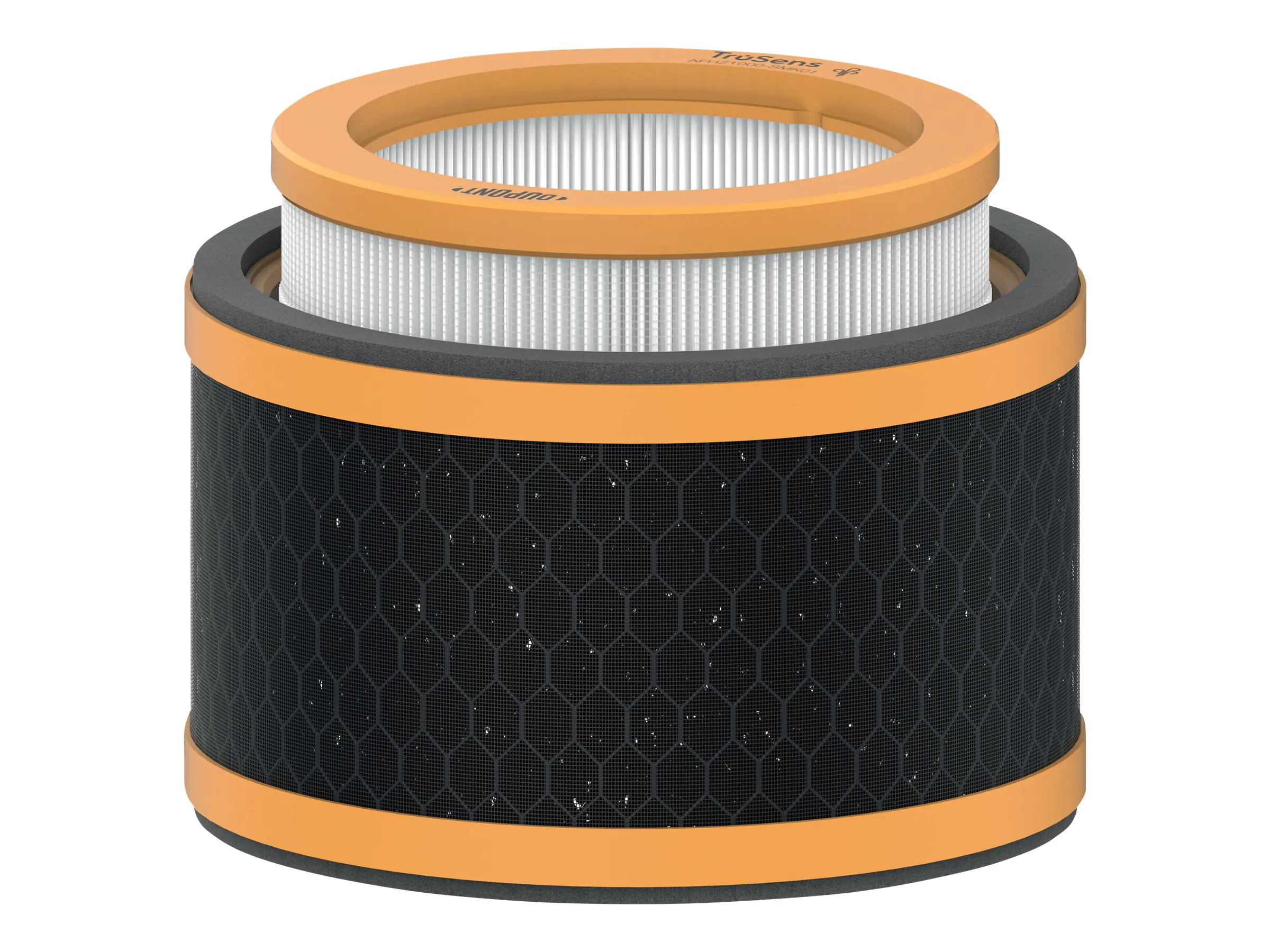 - Ein 3-lagiger Aktivkohle-Pelletfilter umgibt den HEPA-Filter für eine einzigartige Entfernung von Gerüchen und flüchtigen organischen Gasen (VOCs)