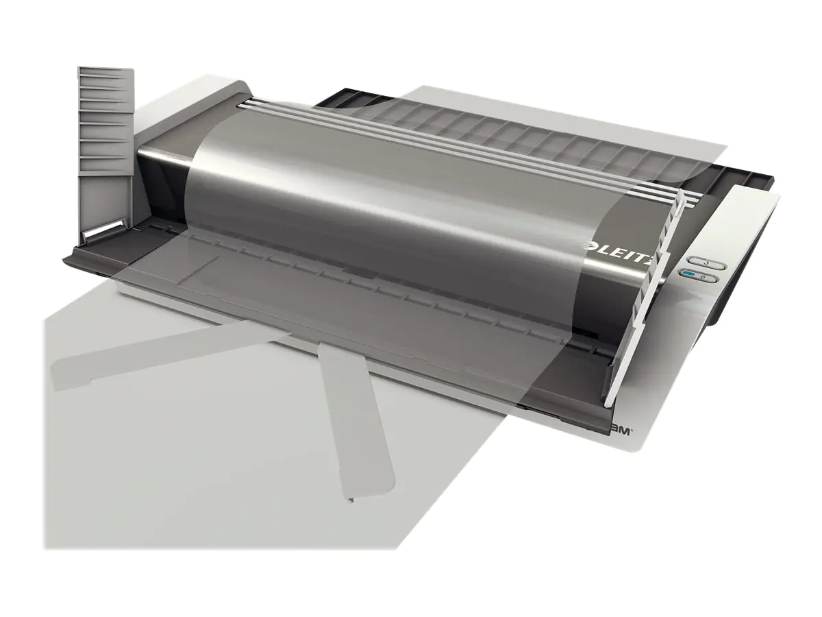 Laminator iLAM Touch 2 Turbo A3 ist ein vollautomatisches Hochleistungsgerät mit einzigartiger Sensortechnologie. Erkennt die Dokumentendicke und wählt automatisch die optimale Geschwindigkeit aus. Benötigt 20 Sek. für Folien DIN A4 mit 80 mic. Keine Einstellung erforderlich; intelligente Sensortechnologie und Rollenrücklauffunktion. Vermeidung von Folienstaus. Niedriger Energieverbrauch und automatische Abschaltung nach 30 Minuten bei Nichtgebrauch. Einklappbare, patentierte Ablagefächer für perfekte Laminierergebnisse. LED zeigt an, wenn das Gerät betriebsbereit ist. Umgehend einsatzbereit durch kurze Aufwärmzeit. Mit patentiertem Easy-Feed-System. Einfach offene Folie auflegen, Klappen schließen. Mit Hilfe der Führungsschiene das Dokument einlegen und perfekt laminieren.