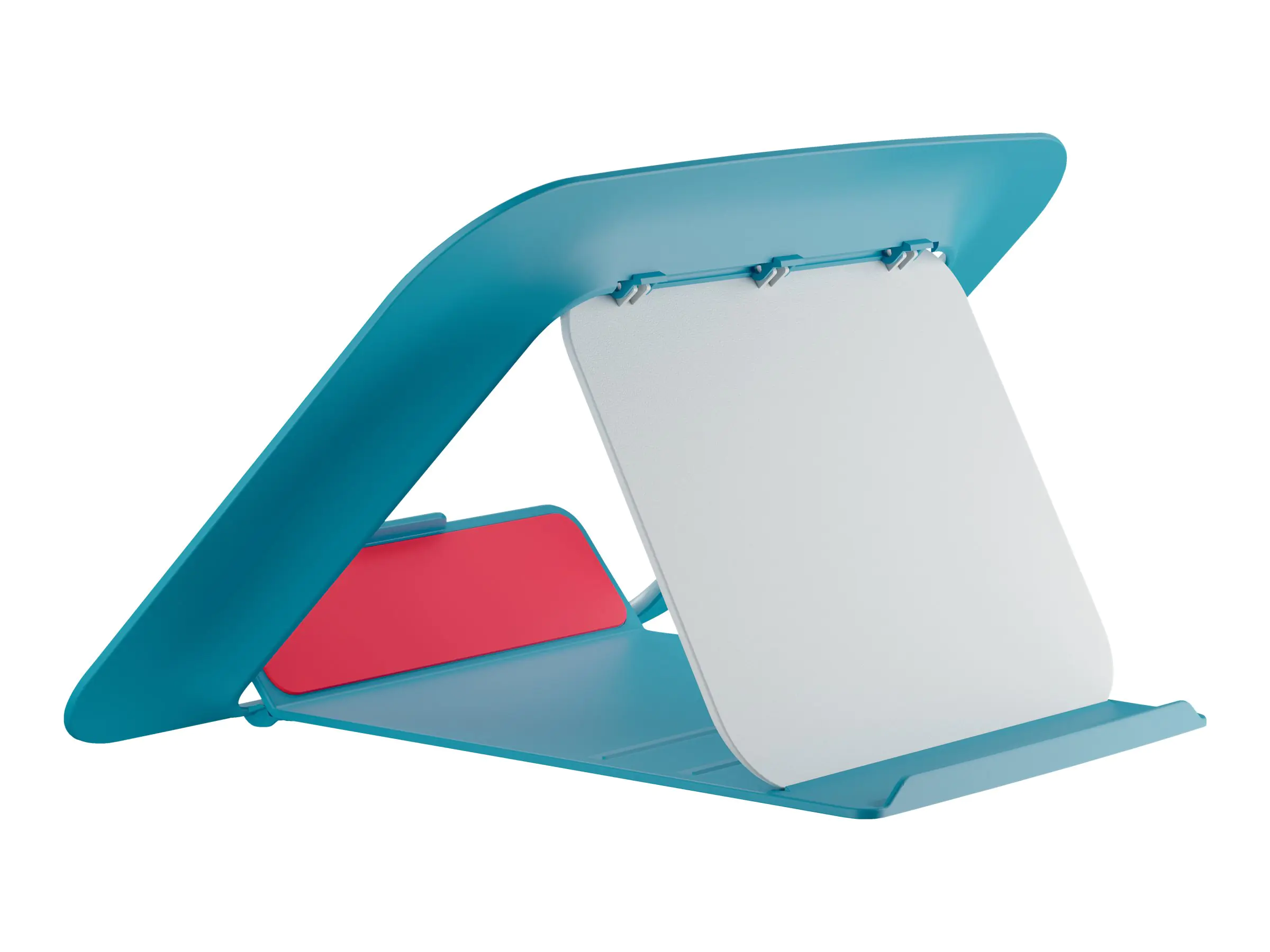 Laptopständer Ergo Cosy für Standard-Laptops. Für Arbeiten im Sitzen oder Stehen und zur Unterstützung des aktiven Arbeitens. 4 Neigungswinkel möglich. Mit gummierten Elementen und einem integrierten Halter für sicheren und stabilen Halt des Laptops. Laptopständer fördern durch ihre Position den Luftstrom und schützen den Akku und andere Komponenten vor Überhitzung.