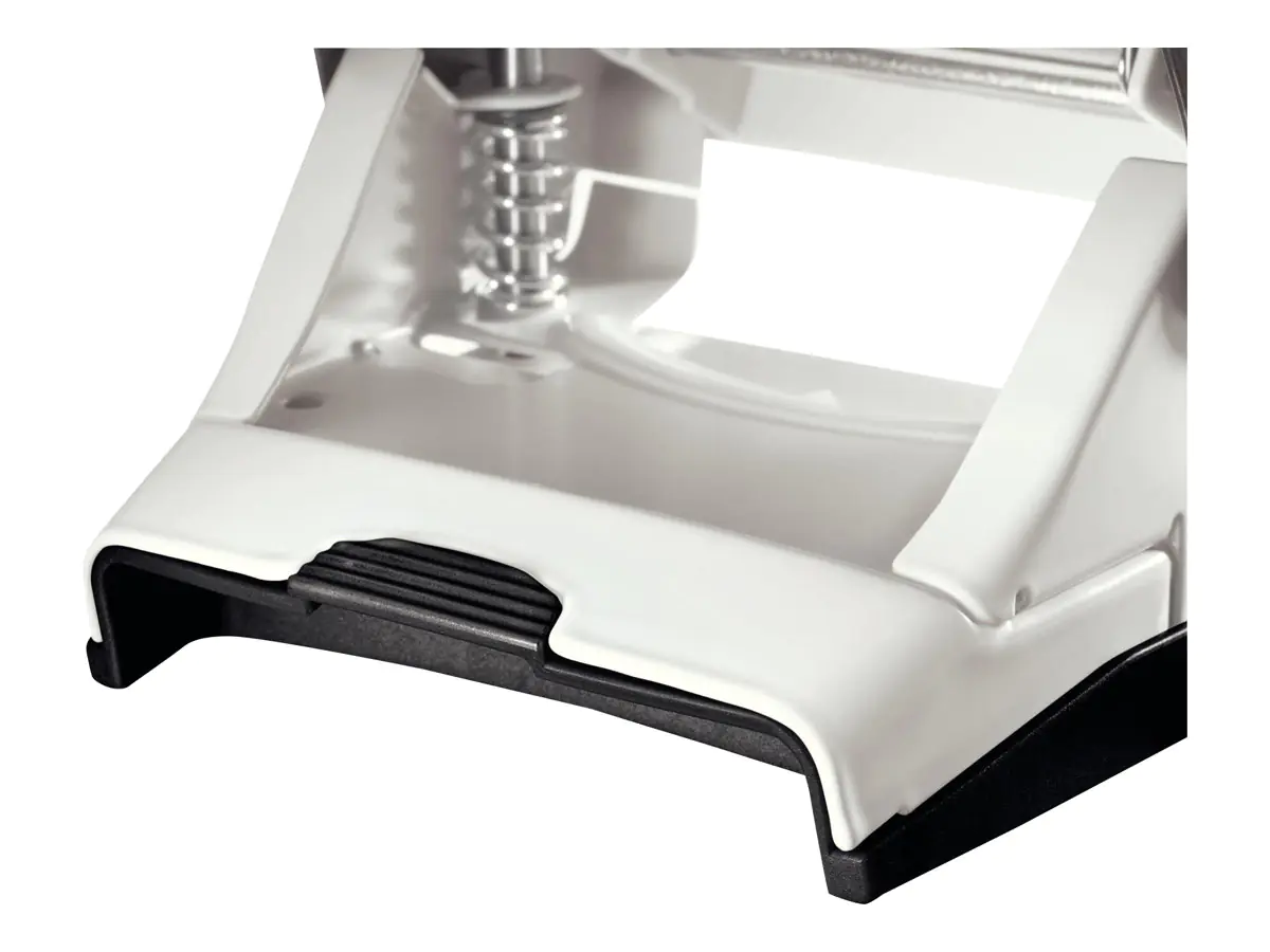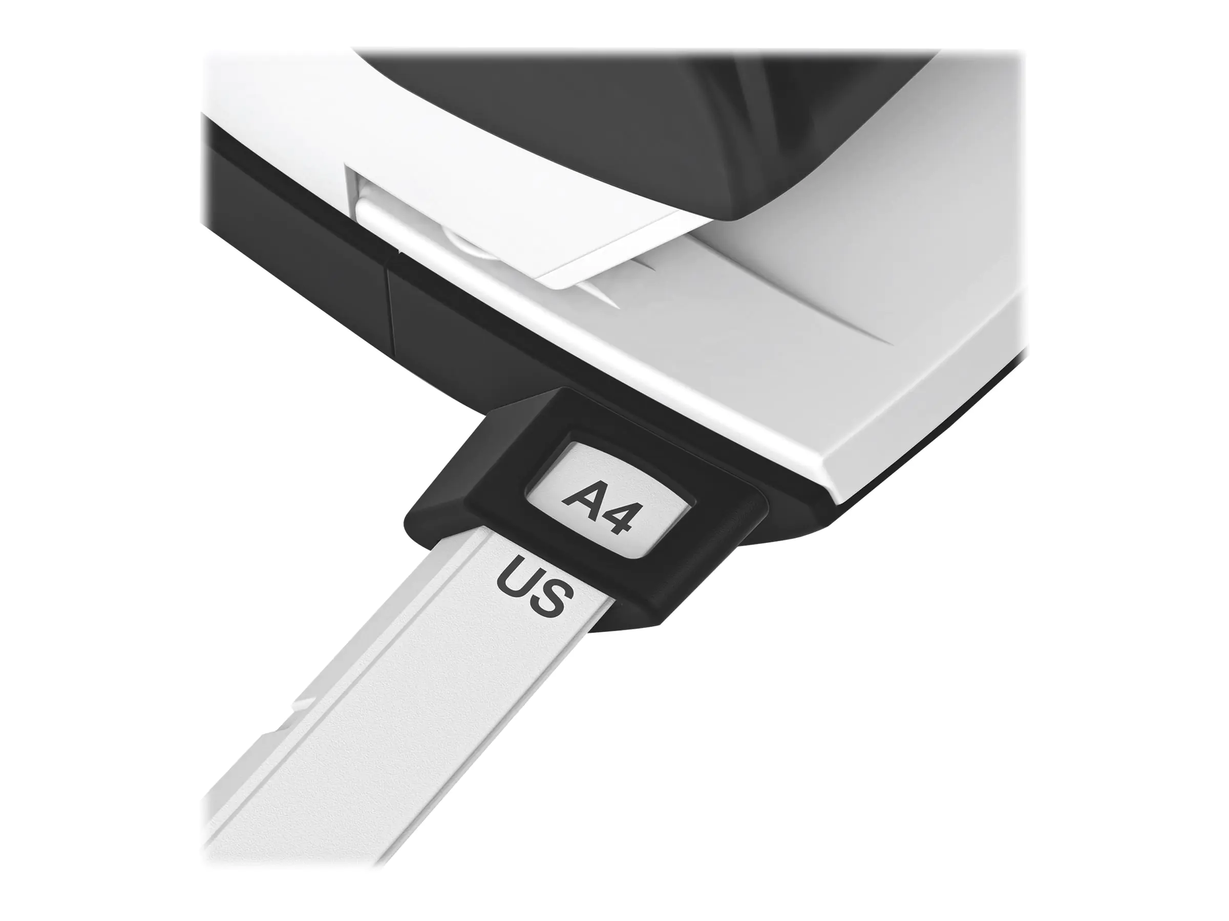 - Klar erkennbare Formatangaben und sicher einrastende Anschlagschiene sorgen für ein sauberes und bündiges Einle.g.en des Papiers
