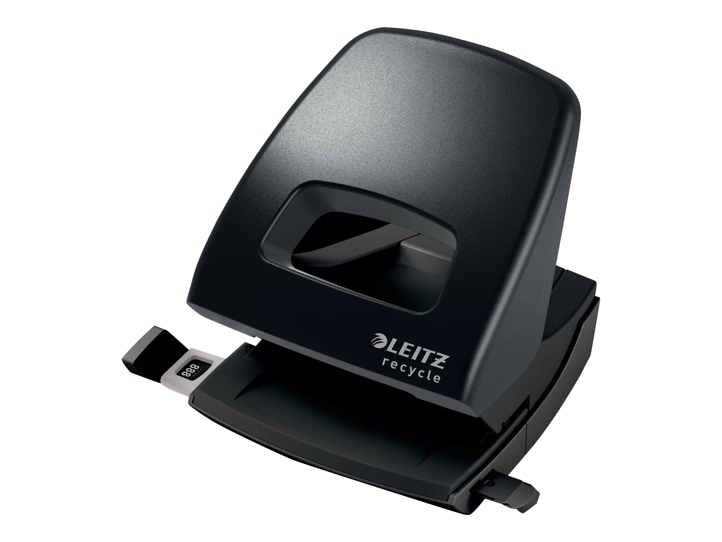 Umweltfreundlicher Premium Locher aus 45 % recyceltem Post-Consumer-Kunststoff für den täglichen Gebrauch. Klimaneutral und 100 % recycelbar, da der Locher vollständig in die verschiedenen Materialtypen zerlegt werden kann. Der robuste Locher ist die perfekt Ergänzung zu den anderen Produkten der Leitz Recycle Serie und ist auf Langlebigkeit ausgelegt. Klar erkennbare Formatangaben und die sicher einrastenden Anschlagschiene sorgen für ein sauberes und bündiges Einlegen des Papier. Einfach zu entleerender, aufklappbarer Abfallkasten.