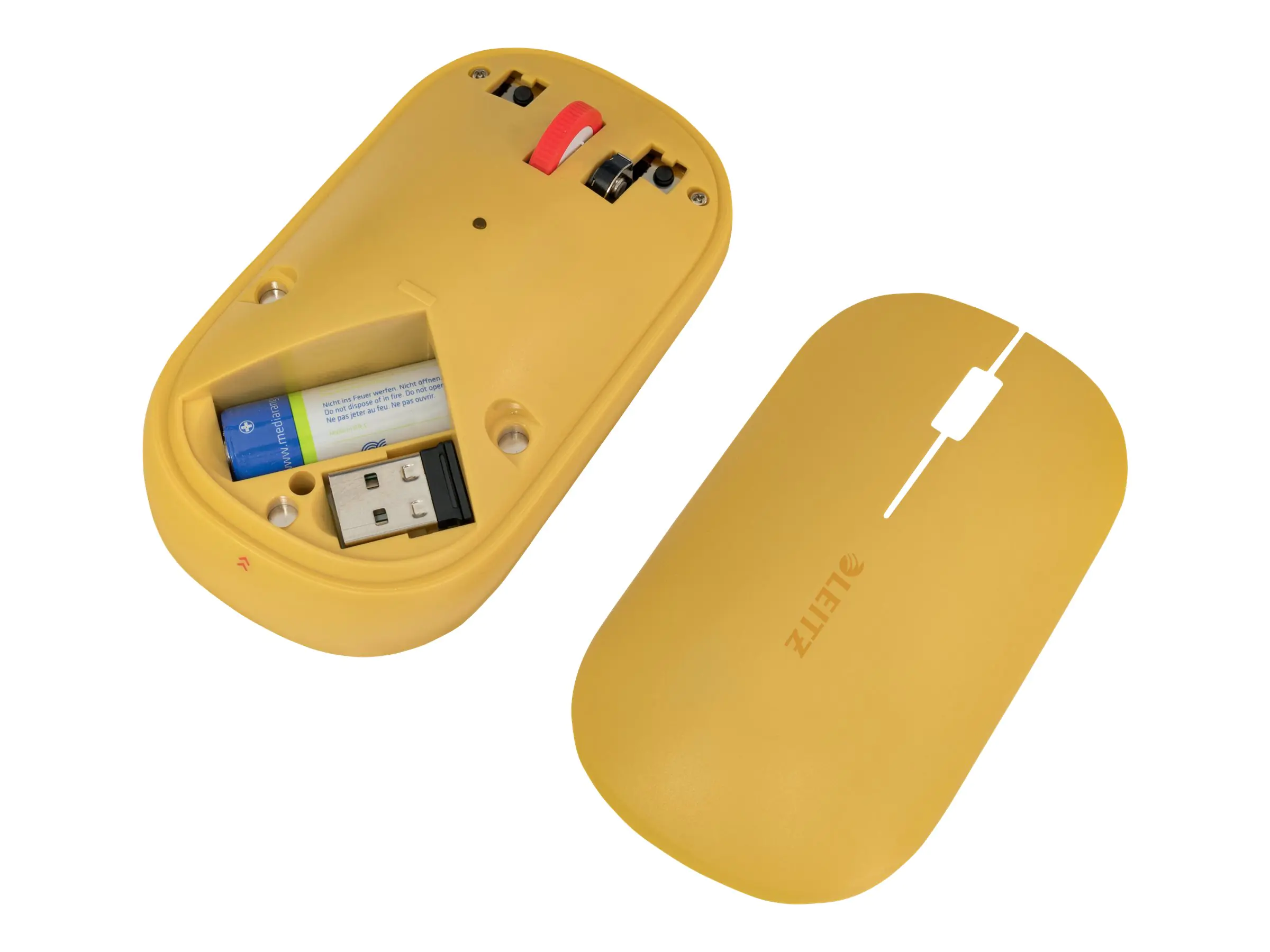 Kabellose Computermaus in schlankem Design, die den ganzen Tag lang Komfort bietet, wo immer Sie sind. Erwarten Sie mehr von Ihrer Bluetooth-Maus mit präzisem Tracking und zahlreichen Verbindungs-, Sicherheits- und Personalisierungsoptionen. Verbindung mit einem Laptop oder mobilen Smart-Gerät über Bluetooth oder mit einem Desktop-PC über den 2,4-GHz-USB-A-Nano-Dongle. Reibungslose Wireless-Funktionalität mit integriertem Sensor, der Ihre Bewegungen schnell und genau erfasst. Erfasst präzise selbst schwierige Oberflächen wie Glas, Granit, Lack, Marmor und Holz. Wählen Sie zwischen 3 dpi-Stufen, um die Cursorgeschwindigkeit Ihrer Leitz-Maus zu personalisieren: hoch für gelegentliches Surfen oder niedrig für präzise Bearbeitung. Mit besonders leisen Tasten.