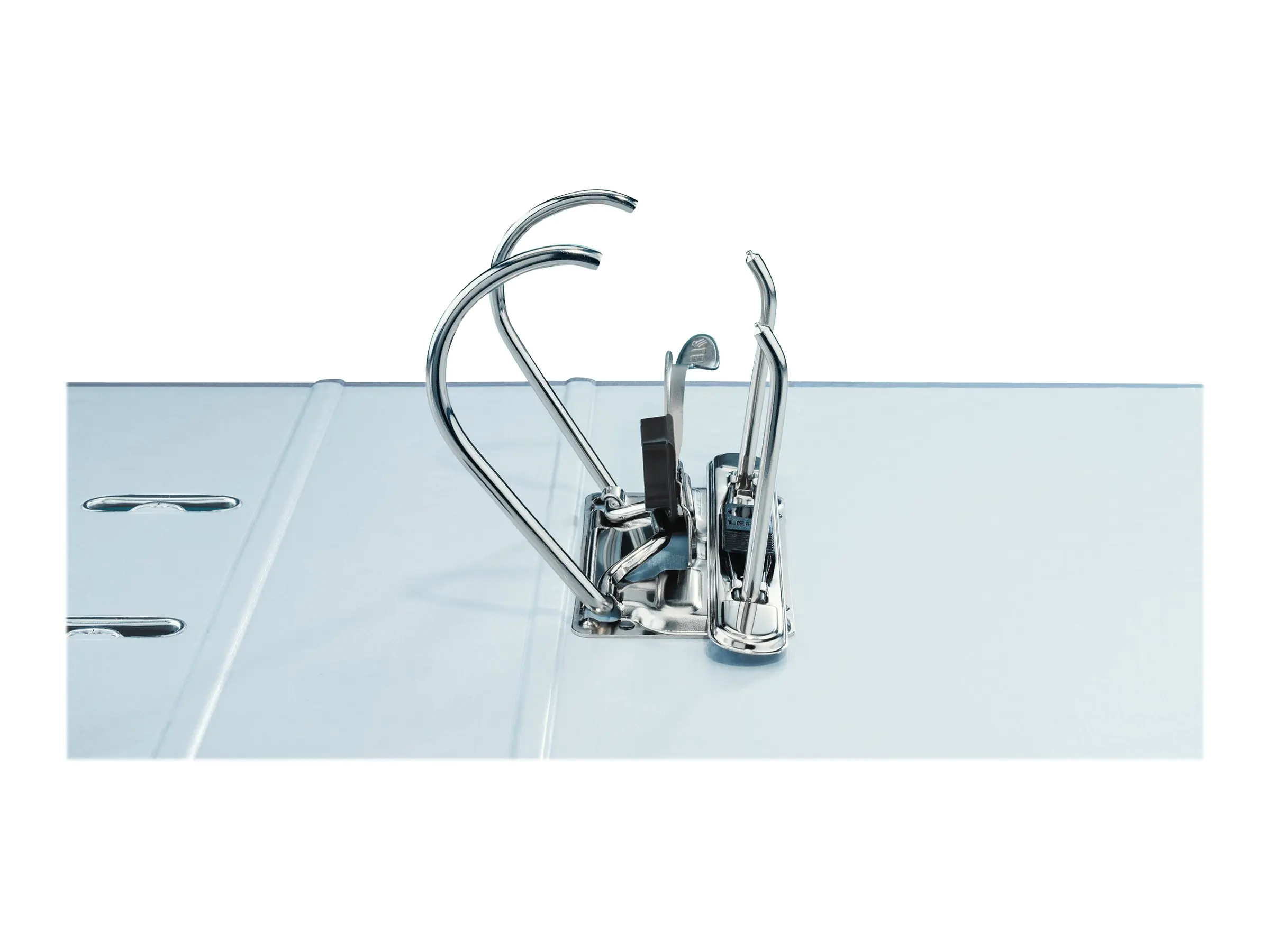 Mit patentierter 180°-Präzisionshebelmechanik. 50% weitere Mechaniköffnung für schnelleres und komfortableres Arbeiten. Ablegen auch auf der linken Seite möglich. Sichttasche am Rücken für auswechselbares Kartonrückenschild. 5 Jahre Garantie auf die Mechanik.