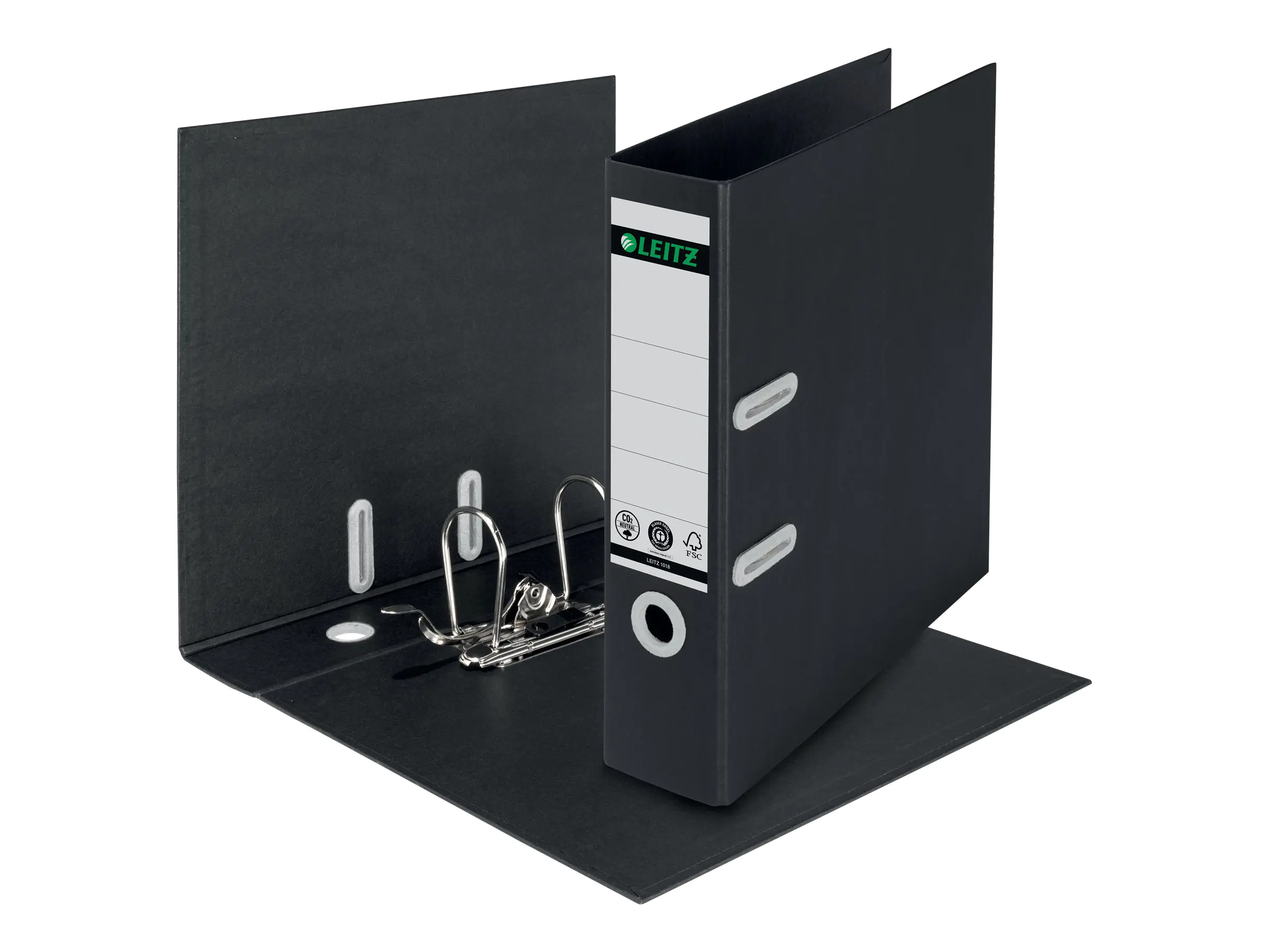 - Robuster Ordner mit stilvollem schwarzen Papier-Einband