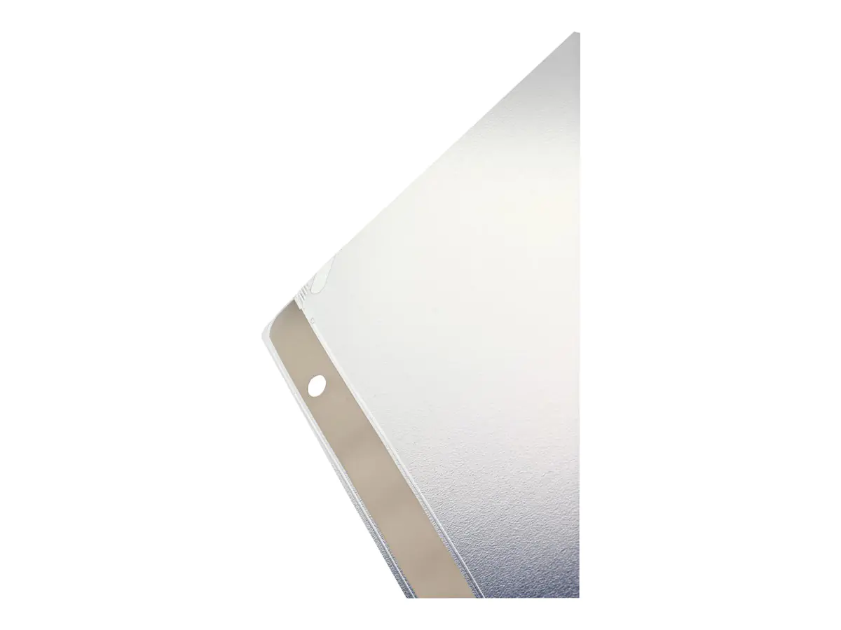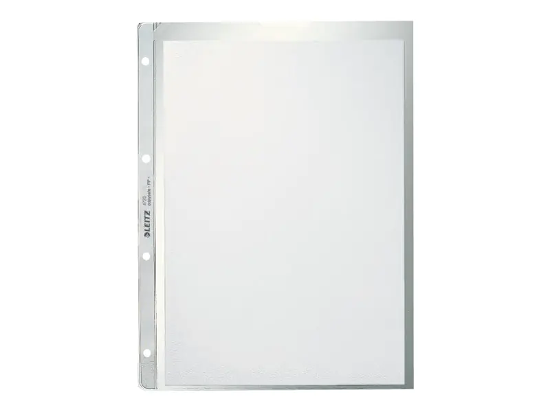Stabil und reißfest, mit Greifausschnitt links oben und Einreißschutz an der linken unteren Ecke, mit durchgehend gelochtem Oberteil.