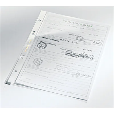 Lochrandverstärkung vorhanden, kombinierter Einreißschutz mit Zugriffshilfe.