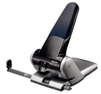 - Das Design ermöglicht das Lochen selbst dicker Papierstapel mit verringertem Kraftaufwand