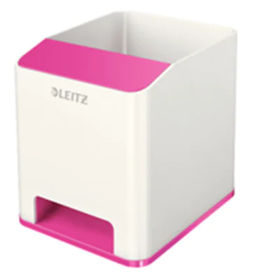 Der Design-Stifteköcher passt perfekt zu allen anderen Produkten der Leitz WOW Serie. Modernes, zeitgemäßes Design zu Hause und im Büro. Viel Platz für Schreibgeräte, Lineal, Stylus und mehr. Extra Fach für Ihr Smartphone (bis iPhone 6 Plus) mit Soundverstärkungsfunktion - erhöht das Klangvolumen Ihres Mobiltelefons. Der Smartphone Bildschirm bleibt vollständig sichtbar.