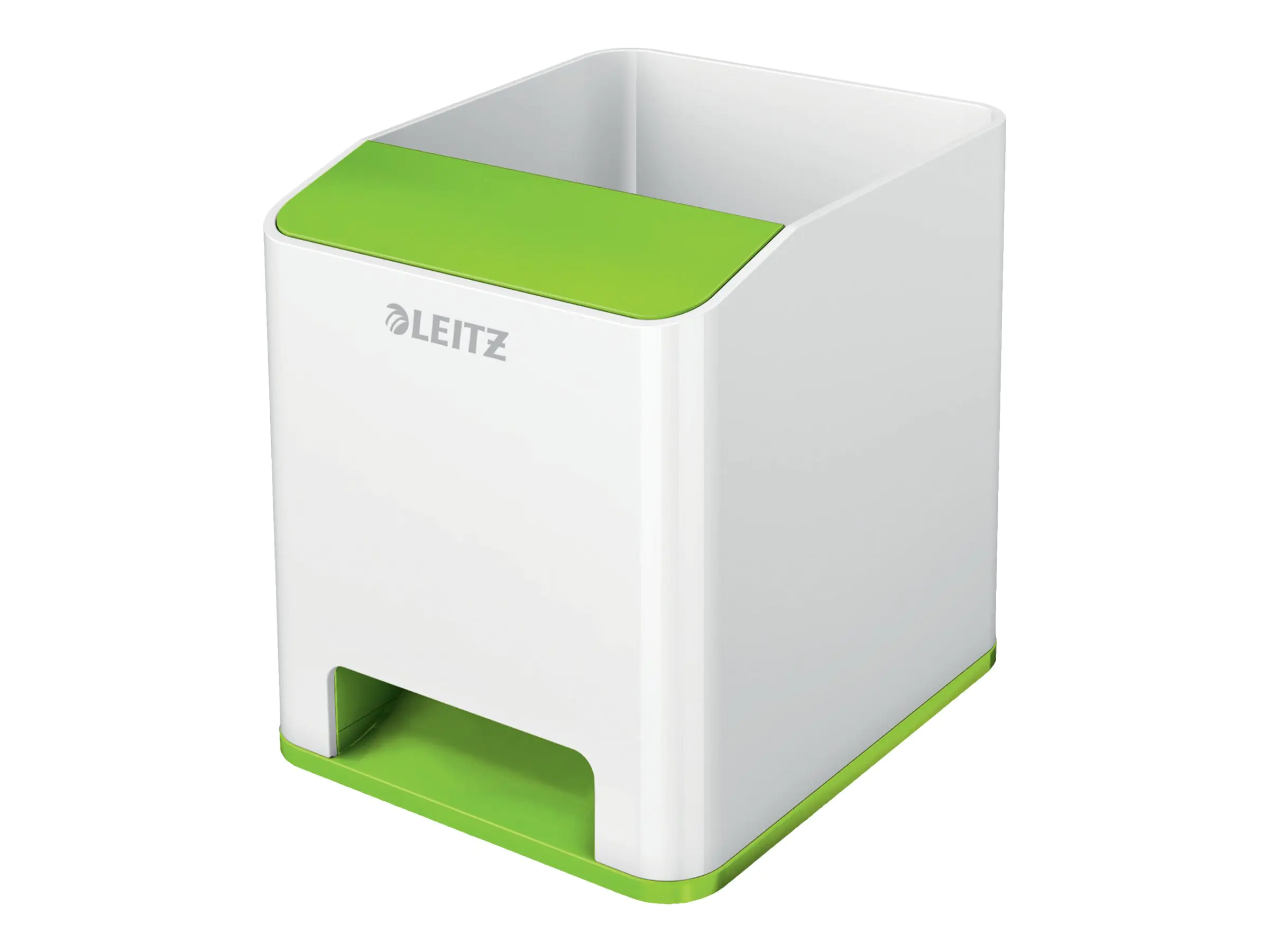 Der Design-Stifteköcher passt perfekt zu allen anderen Produkten der Leitz WOW Serie. Modernes, zeitgemäßes Design zu Hause und im Büro. Viel Platz für Schreibgeräte, Lineal, Stylus und mehr. Extra Fach für Ihr Smartphone (bis iPhone 6 Plus) mit Soundverstärkungsfunktion - erhöht das Klangvolumen Ihres Mobiltelefons. Der Smartphone Bildschirm bleibt vollständig sichtbar.