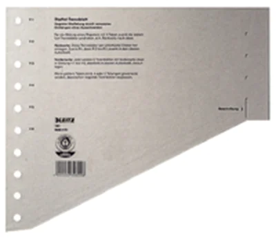 Durch gestaffelte Anordnung können Register mit 3, 4, 6 oder 11 Blatt gebildet werden. Durch zusätzliches Ausschneiden von vier Taben auf 15 Blatt erweiterbar. Gebrauchsanweisung auf jedem Blatt aufgedruckt.