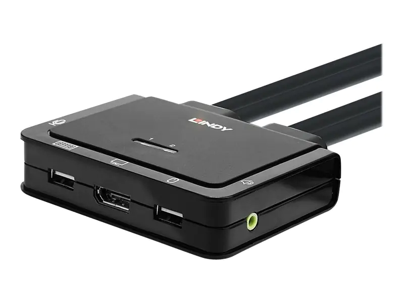 Lindy 2 Port DisplayPort 1.2, USB 2.0 & Audio Cable KVM Switch - KVM-/Audio-Switch - 2 x KVM/Audio - Desktop