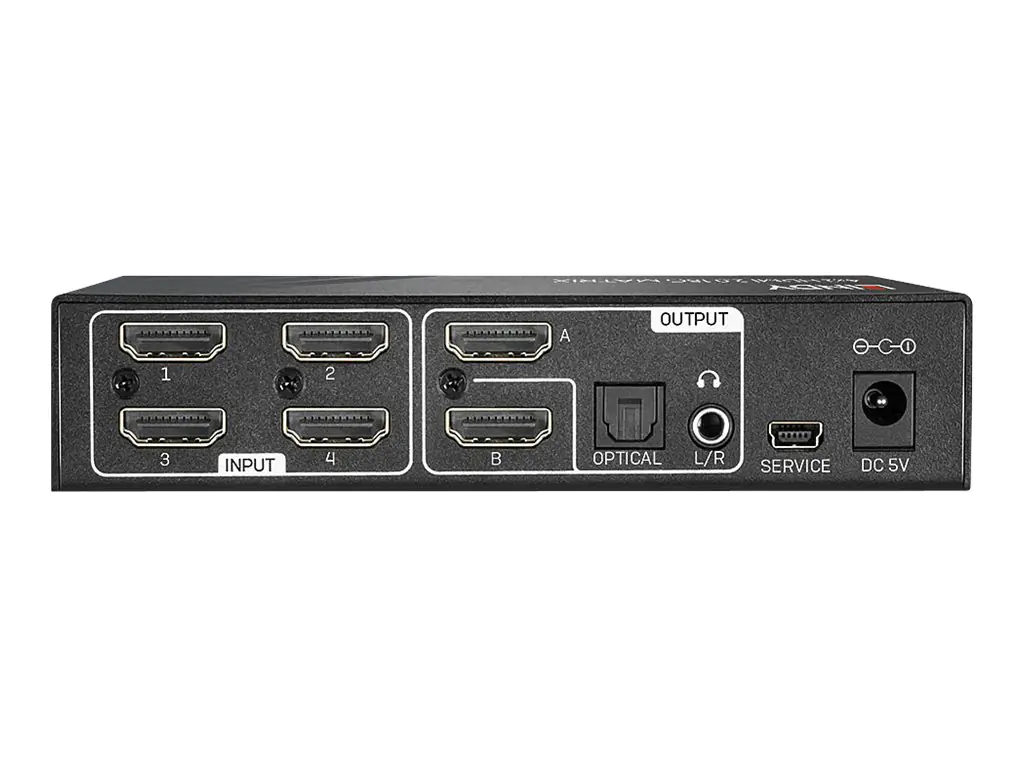 - Simultanes Umschalten zwischen 4 HDMI-Quellgeräten und 2 HDMI Displays