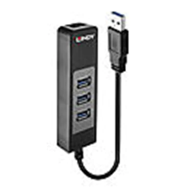 Lindy USB 3.1 Hub & Gigabit Ethernet Adapter - Netzwerk-/USB-Adapter - USB 3.1 Gen 1 - Gigabit Ethernet x 1 + USB 3.1 x 3 - Schwarz