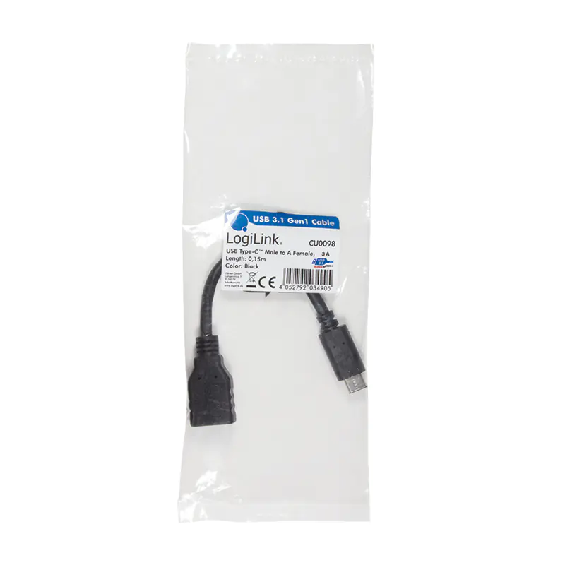 LogiLink - USB-Adapter - 24 pin USB-C (M) zu USB Typ A (W) - USB 3.1 - 15 cm - Schwarz