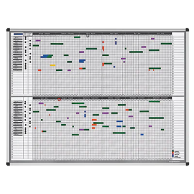 Jahresplaner mit eingedruckten Monatsnamen (deutsch/englisch) Kalendarien und Zeilennummern. Für Terminplanungen (Projekte, Messen, Produktionsabläufe, etc.) und Personalplanungen (Urlaub, Dienstreise, Seminare, etc.). Planer mit stabilen, an den Kanten abgerundeten Eckwinkeln aus ABS-Kunststoff in hellgrau, inkl. magnetoplan Logoprägung. Stets aktualisierbar.