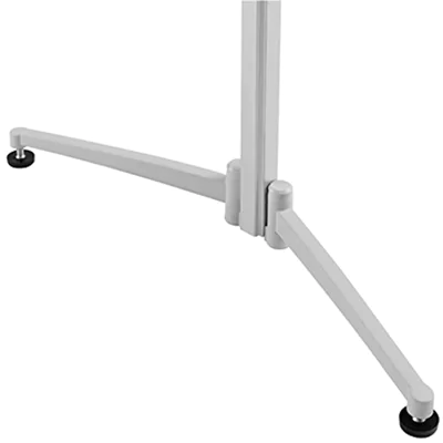 Moderationstafeln mit hochwertigem Rahmenprofil. Mit stabilen, an den Kanten abgerundeten Eckwinkeln aus ABS-Kunststoff in hellgrau, inkl. magnetoplan-Logoprägung. Einteilige Systemtafel. Mit neu entwickelten, einklappbaren Standfüßen aus Aluminium, inkl. feststellbaren Laufrollen und Niveauregulierung (auch zum Einsatz auf Teppich und Laminat). Durch den eleganten, neuen Drehknopf in hellgrau, ist die Tafel stufenlos höhenverstellbar und passt sich so der Größe des Moderators oder der jeweiligen Arbeitssituation an. Tafel kann für platzsparende Lagerung auch bis zum Boden abgesenkt werden. Mit Spezialhaltern in die Wandschiene einhängbar. Nachrüstbar mit Flipcharthalter, Seitenarmen und beidseitig nutzbarer Ablageschale.