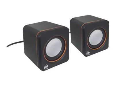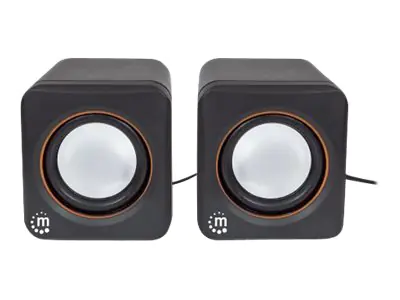 Manhattan 2600 Series Speaker System, Small Size, Big Sound, Two Speakers, Stereo, USB power, Output: 2x 3W, 3.5mm plug for sound, In-Line volume control, Cable 0.9m, Black, Three Year Warranty, Box - Lautsprecher - für PC - 3 Watt - Schwarz