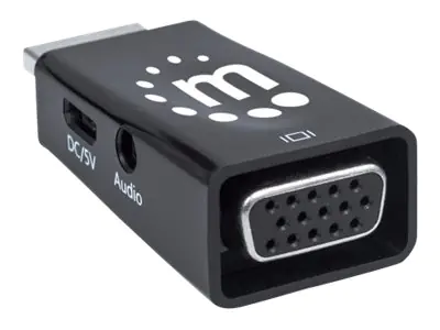 Manhattan HDMI auf VGA-Mikrokonverter, HDMI-Stecker auf VGA-Buchse mit Audio, optionaler USB Micro B-Stromport, schwarz - Videoadapter - HDMI männlich zu HD-15 (VGA), mini-phone stereo 3.5 mm, Mikro-USB Typ B (nur Strom) weiblich - abgeschirmt - Schwarz -