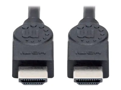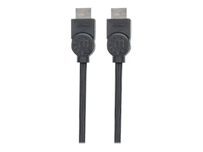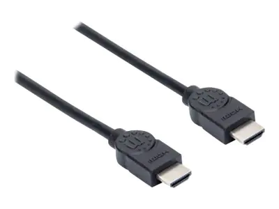 Manhattan HDMI Cable, 4K@30Hz (High Speed), 1.5m, Male to Male, Black, Ultra HD 4k x 2k, Fully Shielded, Gold Plated Contacts, Lifetime Warranty, Polybag - HDMI-Kabel - HDMI männlich zu HDMI männlich - 1.5 m - Doppelisolierung - Schwarz - geformt, 4K Unte