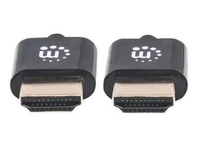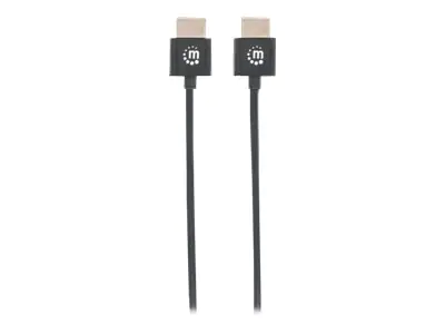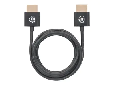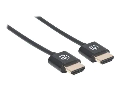 Manhattan HDMI Cable with Ethernet (Ultra Thin), 4K@60Hz (Premium High Speed), 1m, Male to Male, Black, Ultra HD 4k x 2k, Fully Shielded, Gold Plated Contacts, Lifetime Warranty, Polybag - HDMI-Kabel mit Ethernet - HDMI männlich zu HDMI männlich - 1 m - D