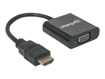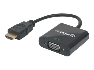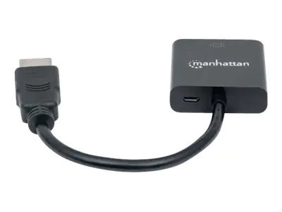Manhattan HDMI to VGA Converter cable, 1080p, 30cm, Male to Female, Micro-USB Power Input Port for additional power if needed, Black, Three Year Warranty, Polybag - Videoadapter - HDMI männlich zu HD-15 (VGA) | ||||