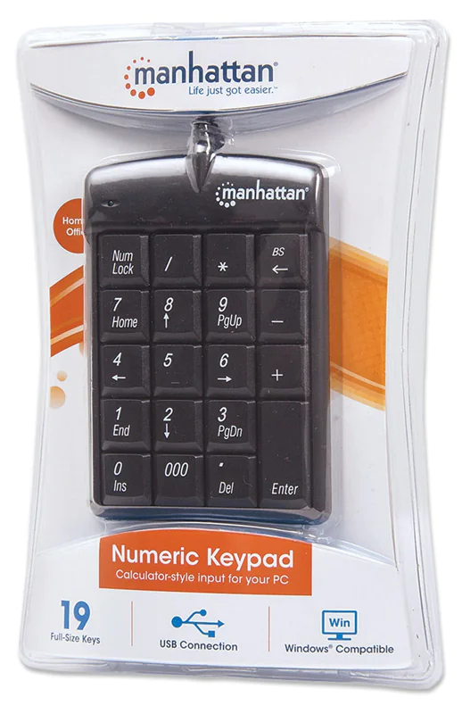 IC Intracom Manhattan Numeric Keypad, Wired, USB-A, 18 Full Size Keys, Black, Membrane Key Switches, Windows and Mac, Three Year Warranty, Blister | ||||